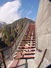 中央:壁に打ち付けられた階段。巨大な黒部ダムをさまざまな角度から堪能できるように、展望台がたくさんあるのだが…。階段がむき出し。こんな所でも自然を体感できるとは…。とほほ。
