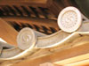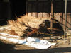右:新しい茅が取り付けられ、その後燻煙が行われる