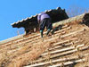 左:「差し茅」作業中の屋根(写真は吉野家)