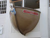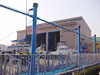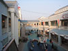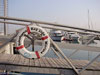 右:建物の壁面から飛び出した船頭。裏側には舵が取り付けられている